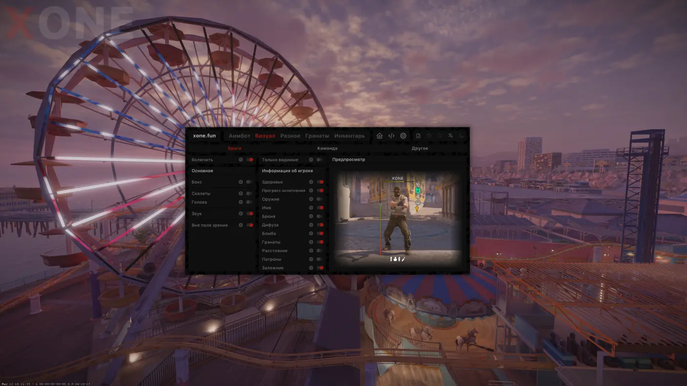 XONE - самый популярный и крупный чит в снг. Уже на протяжении 7 лет мы разрабатываем приватное ПО для counter strike 2. Большое внимание мы уделяем защите от вак бана. За весь срок нашего существования ни разу все наши пользователи не были забанены. Иксван имеет продвинутый и качественный функционал, который будет радовать вас каждую катку.