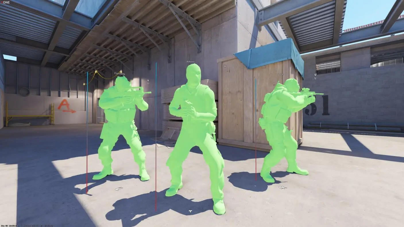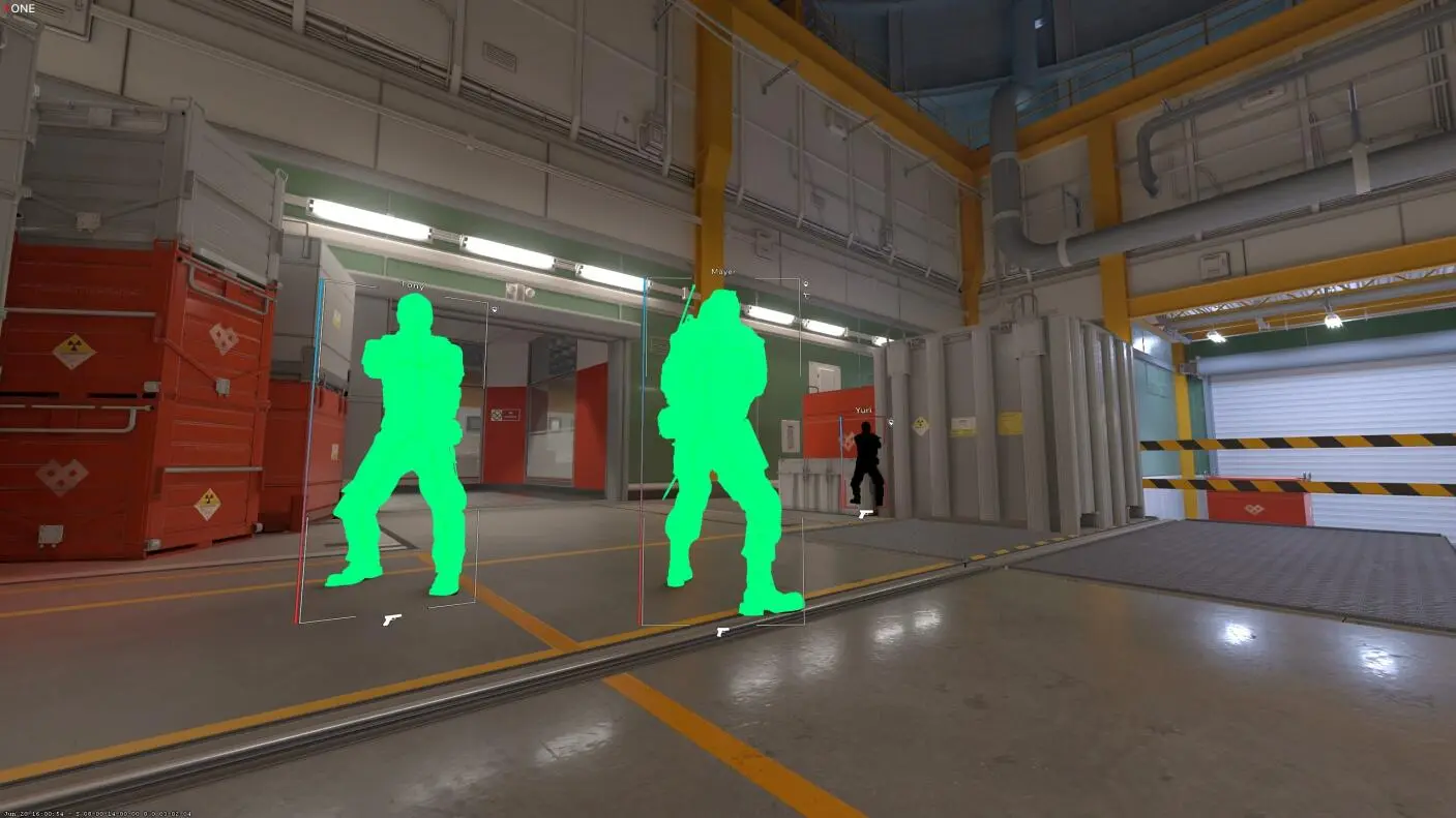 2. Wallhack(透视):激活透视后,可以透过墙看到敌人。 显示关于敌人的信息:健康状态、武器、弹药数量。
